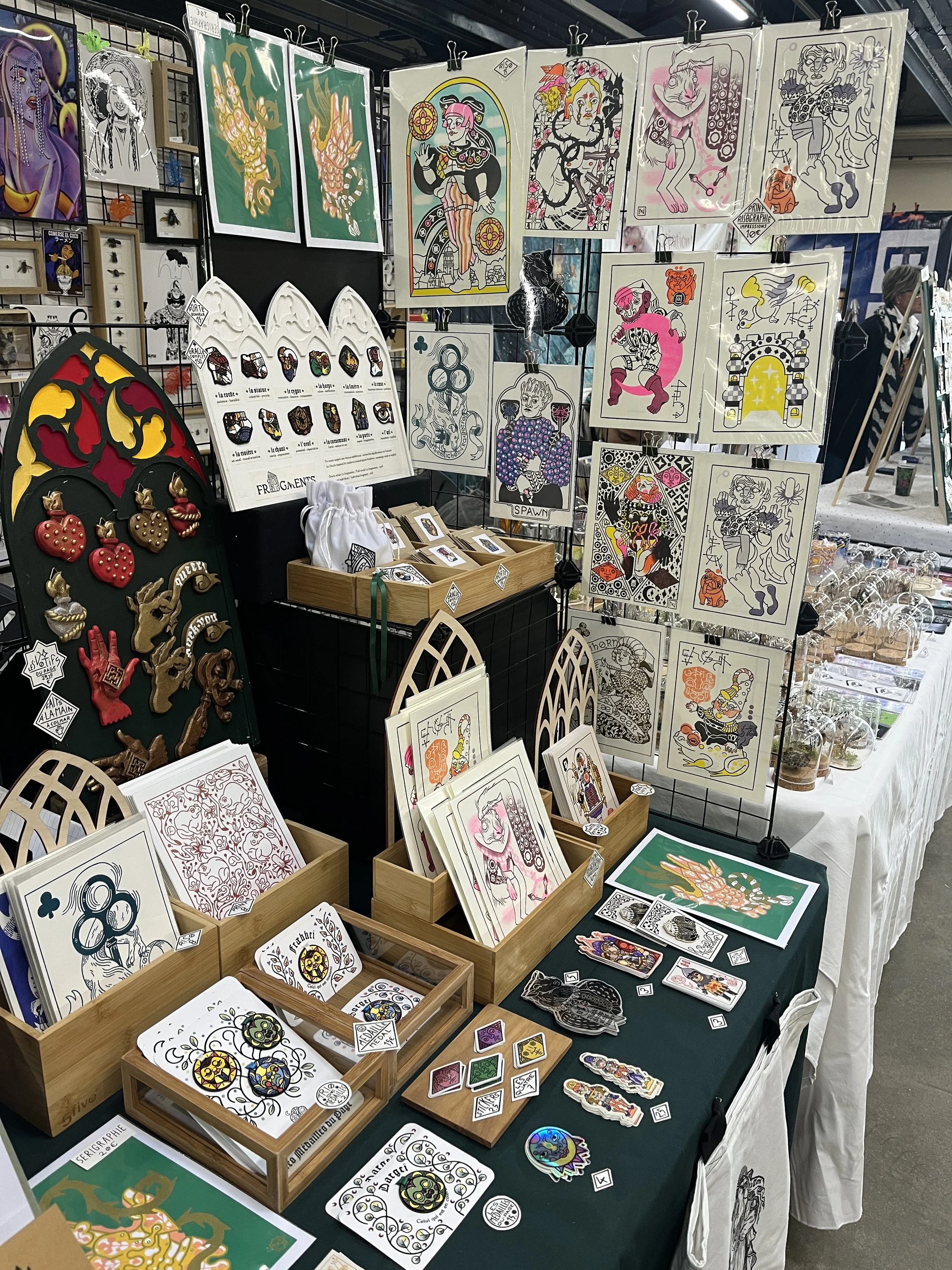 A son pupitre de moine en Alsace, iel invente des jeux et langages imaginaires pour créer un monde fou mais qui lui fait sens. Ses mediums de choix sont la risographie, les jeux de cartes et les petits objets de dévotion.