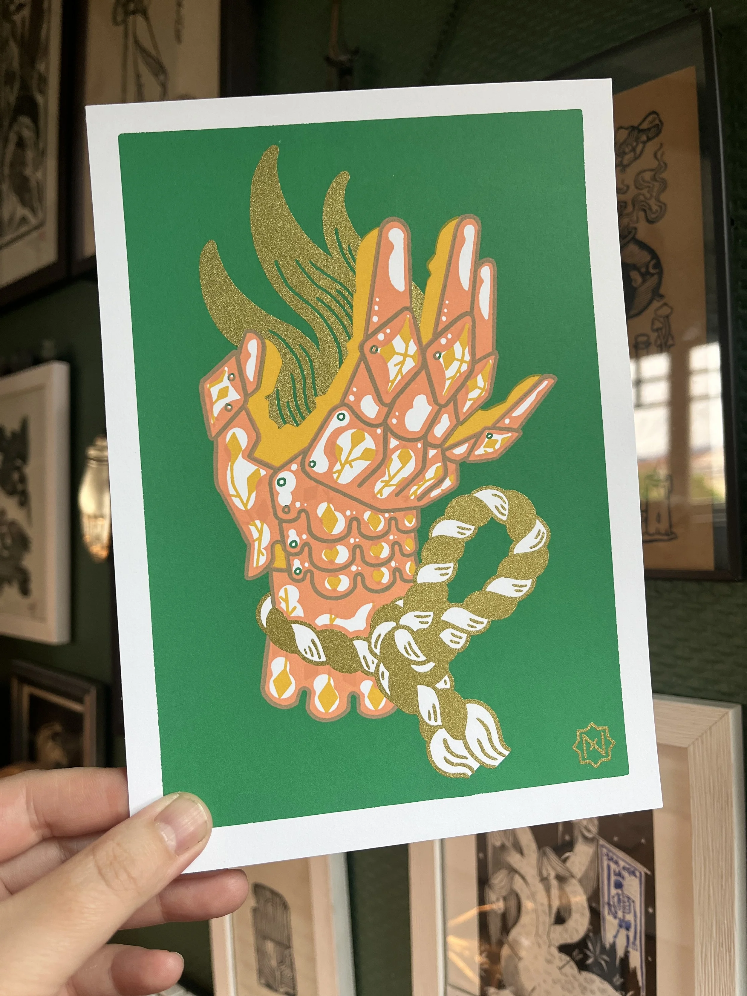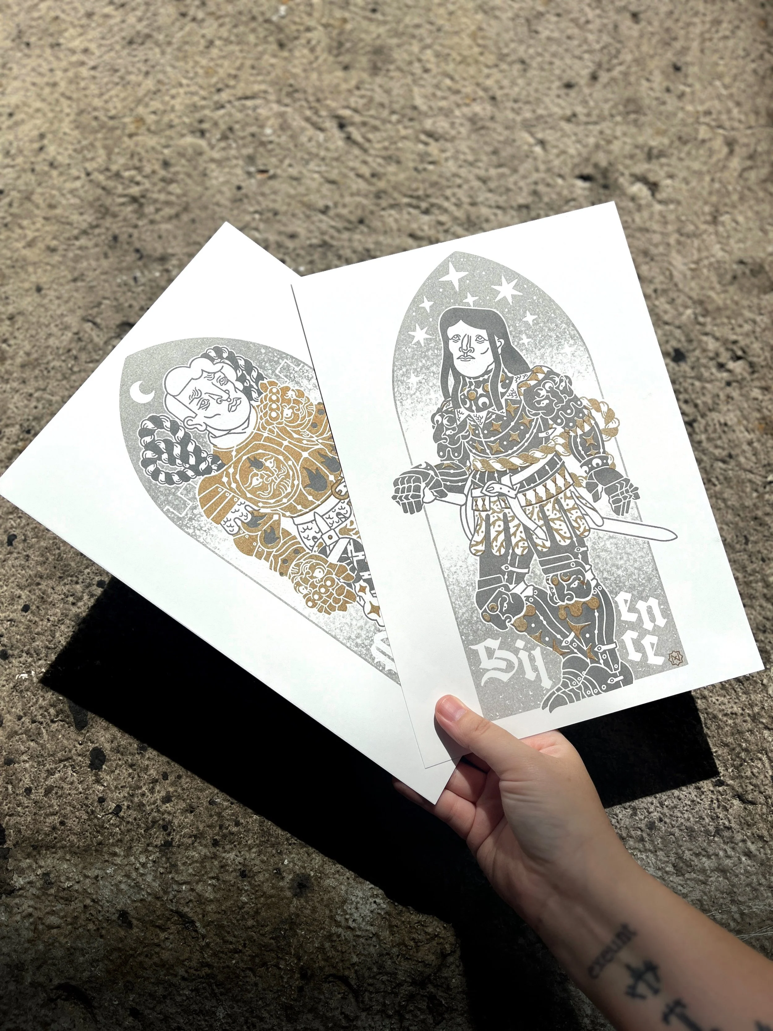 Gravures sur bois, Moyen Âge, nature sauvage ou encore Art Nouveau. Autant de thèmes qui sont pour AURELIA LEARDINI des sources d'inspiration dans lesquelles elle aime puiser. Professeur agrégée d'arts plastiques le jour et sorcière féministe la nuit (et le jour aussi), elle aime créer de nouveaux mondes à partir d'anciennes références, les rendant toujours plus mystiques, queer et engagés. Ses illustrations et estampes voient ainsi se croiser clins d'œil artistiques, cinématographiques ou littéraires et figures de chevalières et de sorcières.